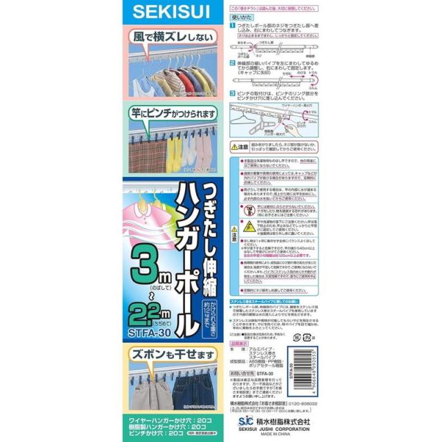 ●つないで伸ばせるつぎたし伸縮式、スペースや洗濯物の量に合わせて長さ調節ができます。