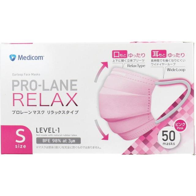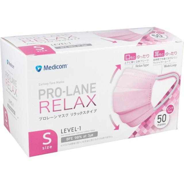 マスク 医療用 プロレーンマスク リラックスタイプ Sサイズ ピンク 50枚入