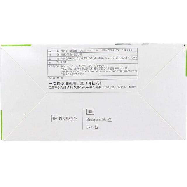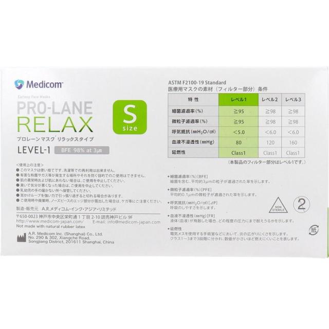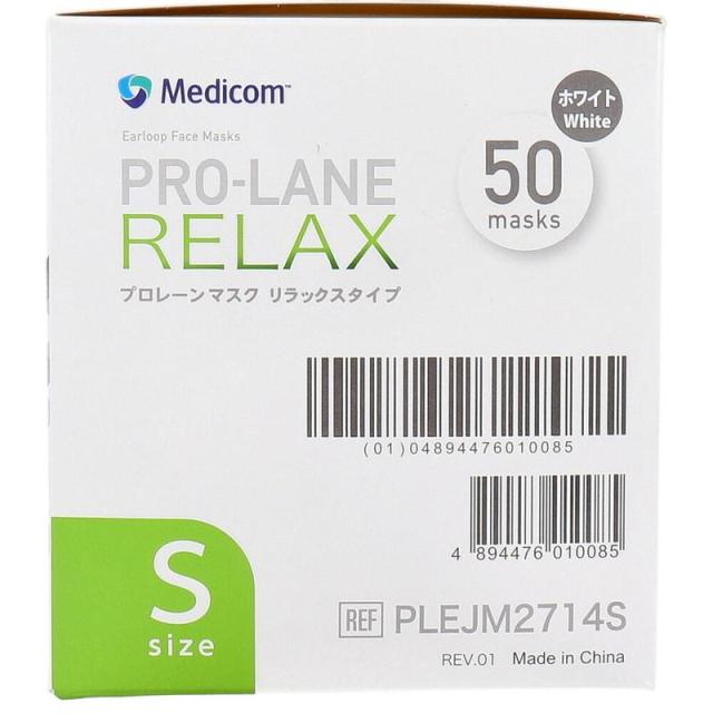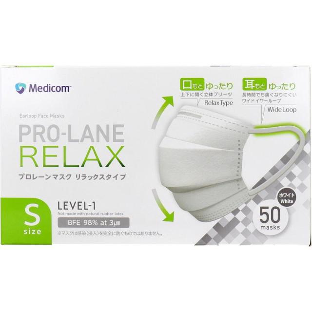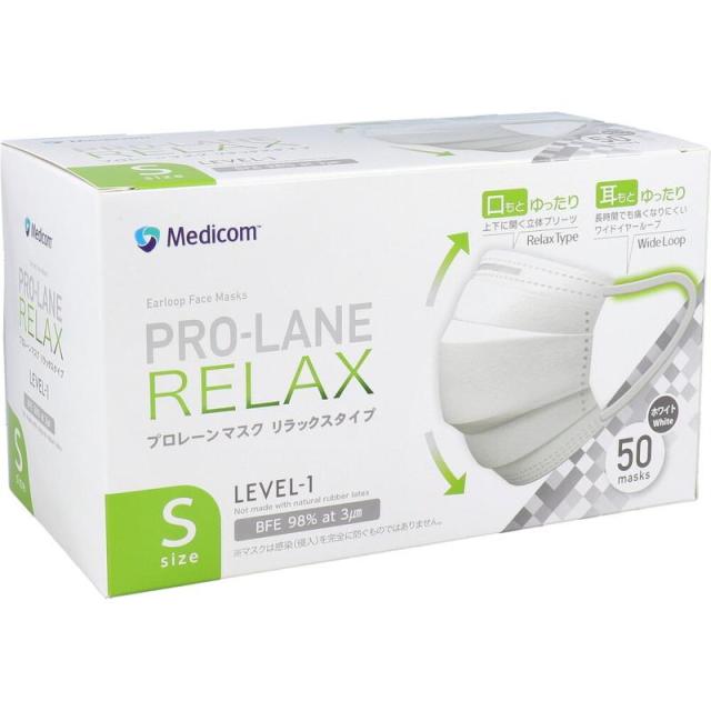 マスク 医療用 プロレーンマスク リラックスタイプ Sサイズ ホワイト 50枚入
