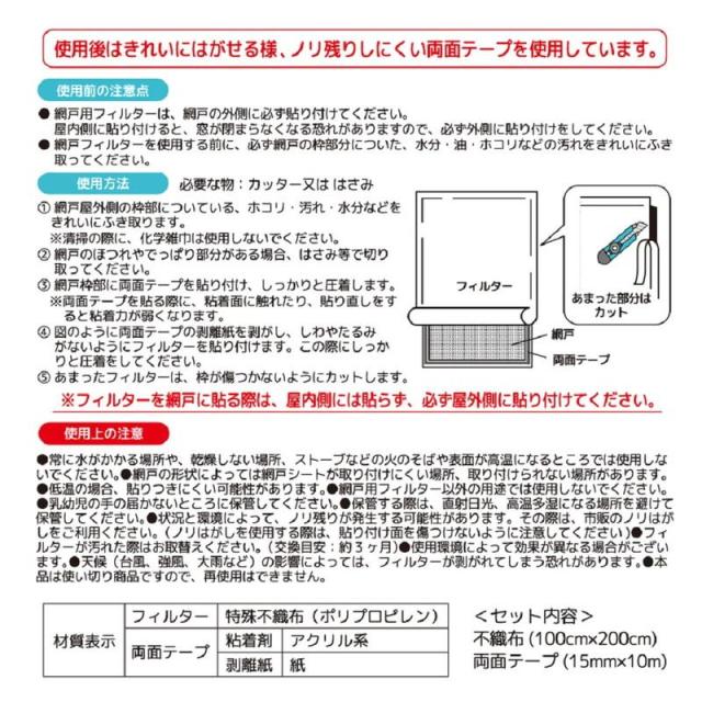 【メール便 送料無料】網戸花粉フィルター 花粉対策 マスクメーカーが作った網戸フィルター エアクリーン 1m×2m 1枚入