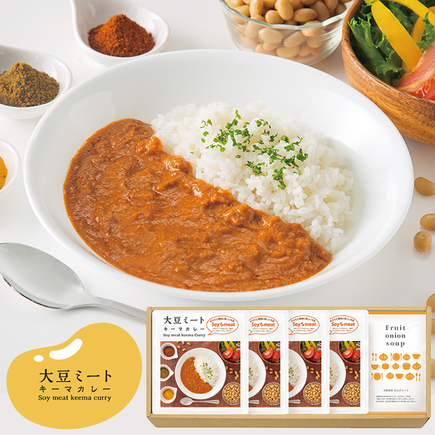 ●大豆ミート・キーマカレー(170g)×4、玉ねぎスープ(6.2g×2)×1