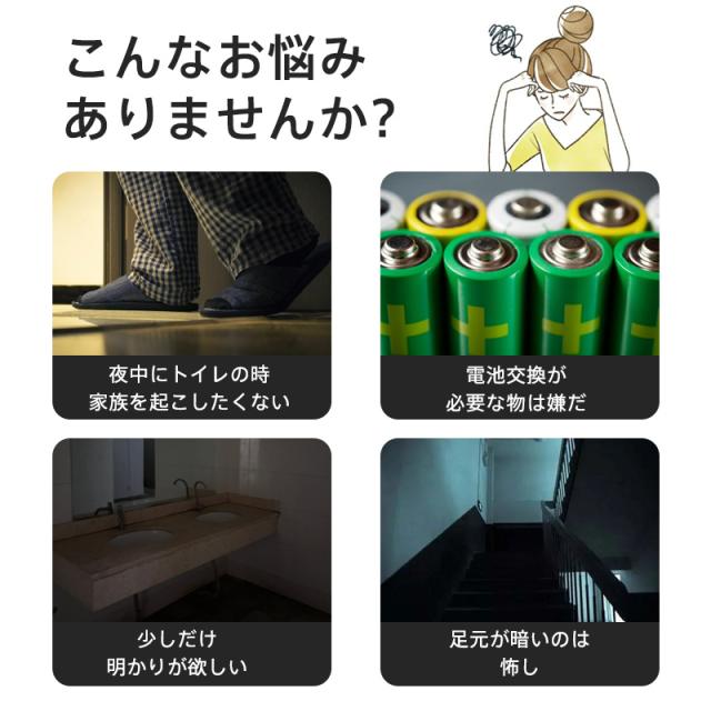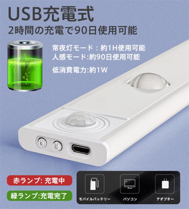 人感センサーライト 室内 センサーライト USB充電式 人感センサー LED フットライト 足元 玄関 廊下 トイレ 防犯 照明