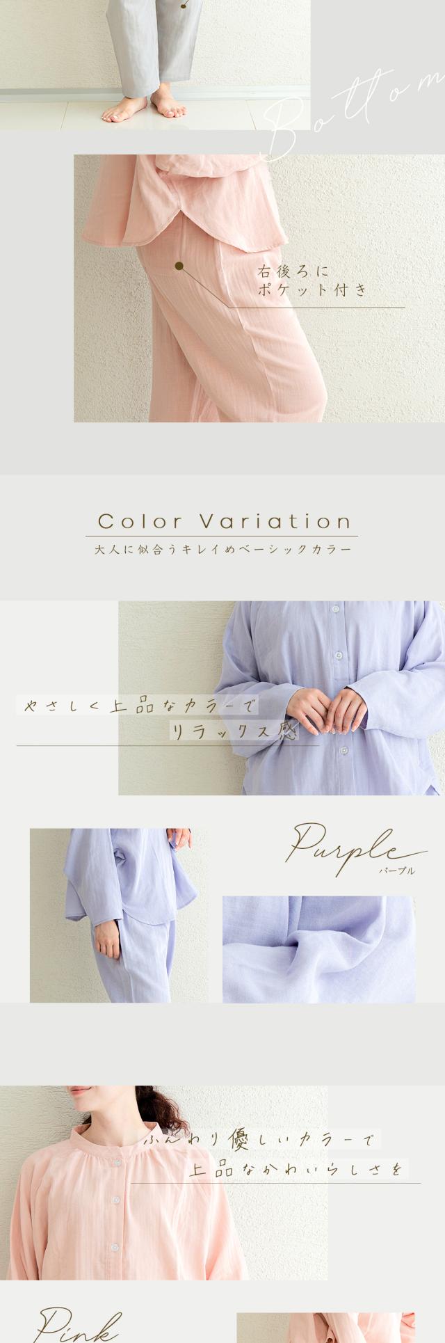 ダブルガーゼパジャマ パジャマ ルームウェア レディース 長袖 綿100% 無地 前開き ノーカラー 保湿 敏感肌 ゆったり オールシーズン 春 夏 秋 冬 S M L LL 母の日 ギフト 父の日