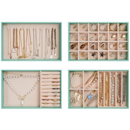 ProCase ジュエリートレイ 4個 ジュエリー収納 積み重ね可能 アクセサリケース ドレッサー引き出し用 ディスプレイ 仕切り付き ミント