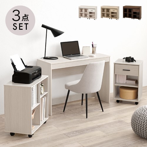 デスク3点セット デスク 幅105×奥行40cm ラック 幅59×奥行35cm チェスト 幅40×奥行35cm ウォッシュホワイト RT-1477WS 【北海道・沖縄・離島 送料別】