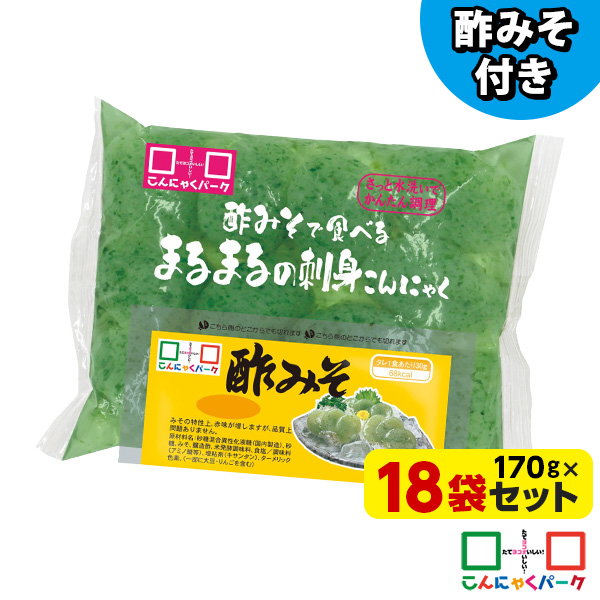 刺身こんにゃく 酢みそで食べるまるまるの刺身こんにゃく さしみこんにゃく あおさ風味 酢みそ付き ダイエット食品 こんにゃくパーク 蒟蒻 低糖質 カロリーオフ 低カロリー 群馬県産 置き換え ファスティング (170g*18袋)