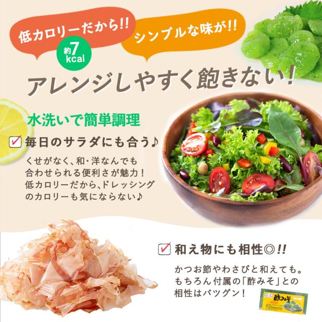 | 群馬県産こんにゃく粉を使用して造り上げた、ぷるっとまるまるした形状のあおさ風味さしみこんにゃくです。さっと水洗いするだけで簡単に調理できます。添付の酢みそを付けてお召し上がりください。 |