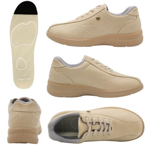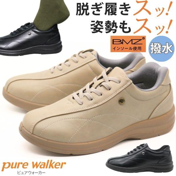 スリッポン レディース 靴 スニーカー 黒 ブラック ベージュ 手を使わず履ける ハンズフリー 美脚 姿勢サポート 高機能インソール 高機能中敷き BMZインソール 撥水 雨 幅広 3E 防滑 シンプル 軽い 軽量 外反母趾 ピュアウォーカー pure walker PW1800
