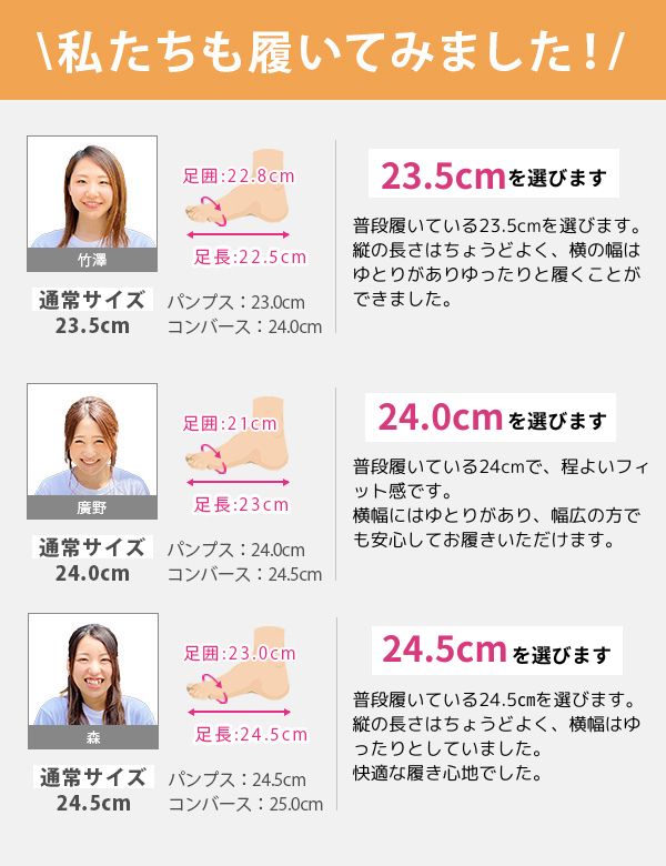取り扱いサイズ:22.5cm 23cm 23.5cm 24cm 24.5cm