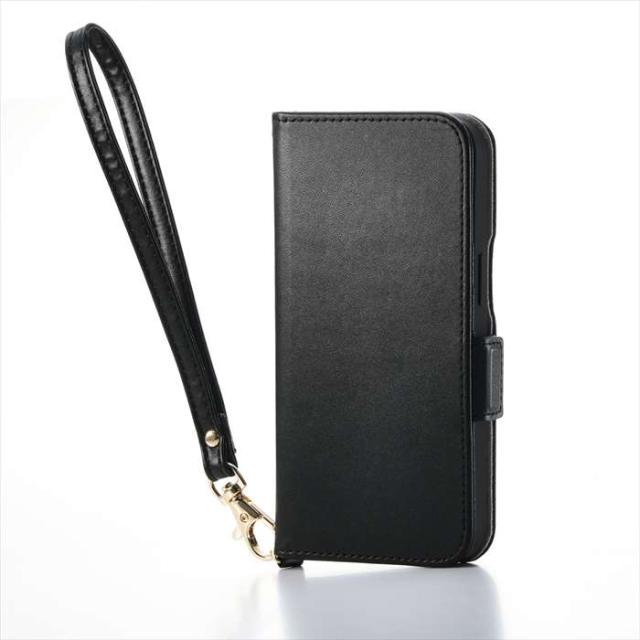 代引不可 iPhone 16e ケース レザー 手帳型 マグネット フラップ 衝撃吸収 ストラップホール付 ハンドストラップ付 スタンド機能付 カードケース機能付 ブラック エレコム PM-A25SPLFY4BK