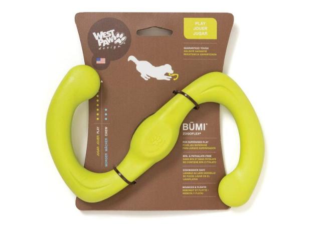 丈夫でしなやかな犬用おもちゃ:アメリカのメーカー、West Paw(ウェストポウ)が開発したゾゴフレックスシリーズの「ブーミ」は、引っ張りっこ好きの犬にぴったりのS字型おもちゃです。