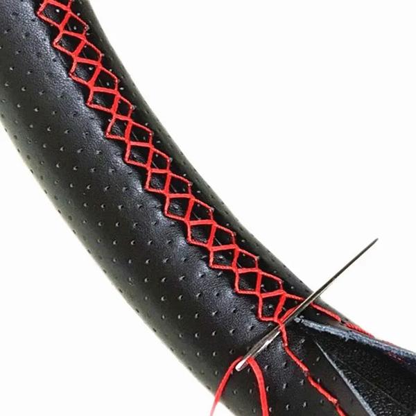 38cm車ハンドルカバーファイバーレザー糸人工皮革車カバースイート自動車アクセサリー