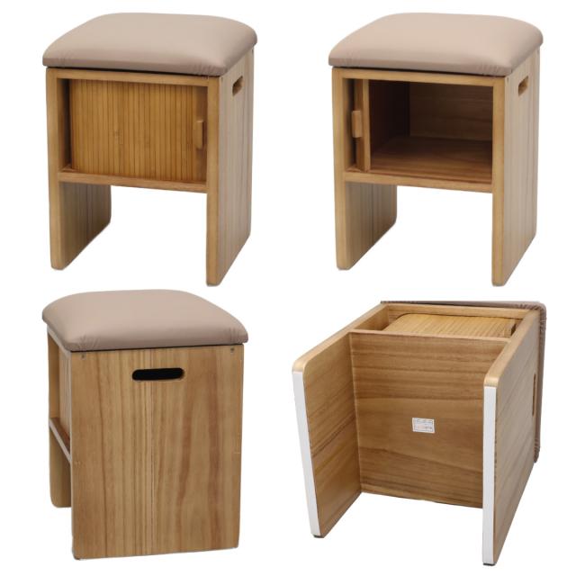 スツールボックス 座面高37cm ジャバラ扉 天然木桐製 ( 木製 収納付き スツール 腰掛け 玄関 椅子 チェア オットマン 小物収納 1人掛け ブラウン ホワイト 白 )