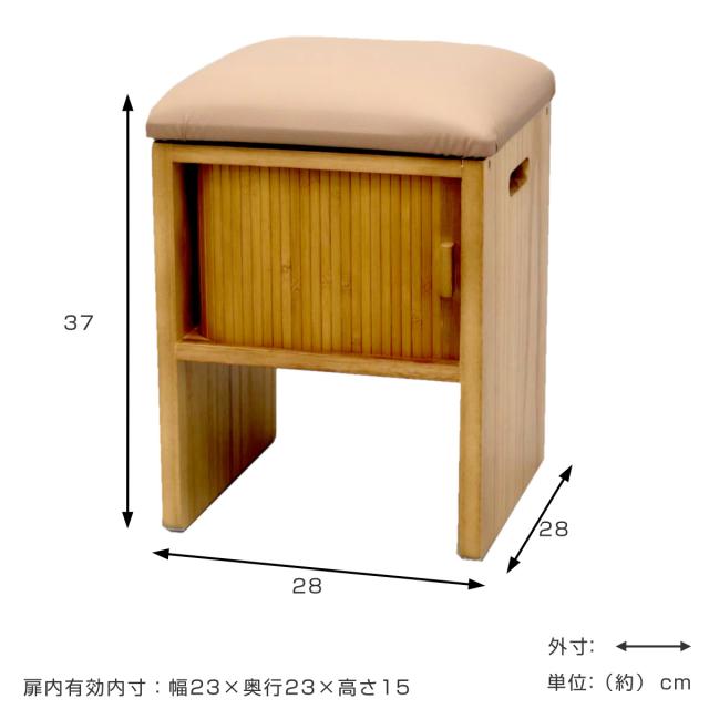 竹製のジャバラ扉がついた収納スペース付きスツールです。扉が横にスライドするので狭い場所でも開閉できます。座れて収納もついてコンパクト設計でどんな場所でも大活躍。