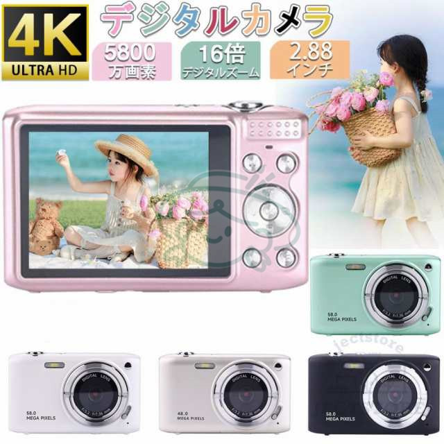 デジタルカメラ 高画質 4K 5800万画素 防塵 かわいい 軽量 2.88インチ 16倍ズーム 高倍率 手ぶれ補正 ポータブル キッズカメラ 防塵 耐衝撃 子供用 修学旅行