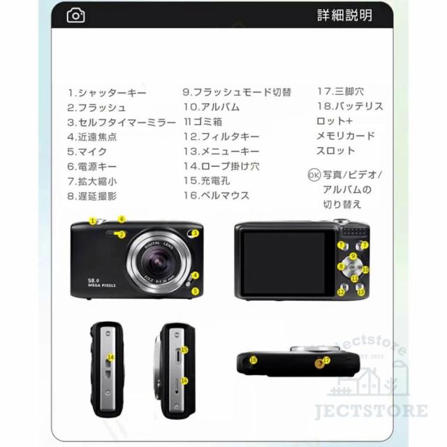 カメラ初心者のお子様や年配の方、学生向けとしてもオススメのデジタルカメラです。シンプル機能で操作が簡単です。シャッターボタンを押すと、素晴らしい瞬間を捉えることができます。子供・学生・学習用・児童用ポケットカメラにも最適です。 最大128GBのmicro SD カードをサーポートできます。なおmicro SD カードは必ずフォーマットしてからお使い下さい。