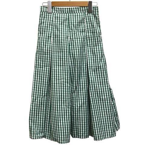 【中古】ABITOKYO スカート フレアスカート 膝丈 チェック柄 S 緑 グリーン レディース
