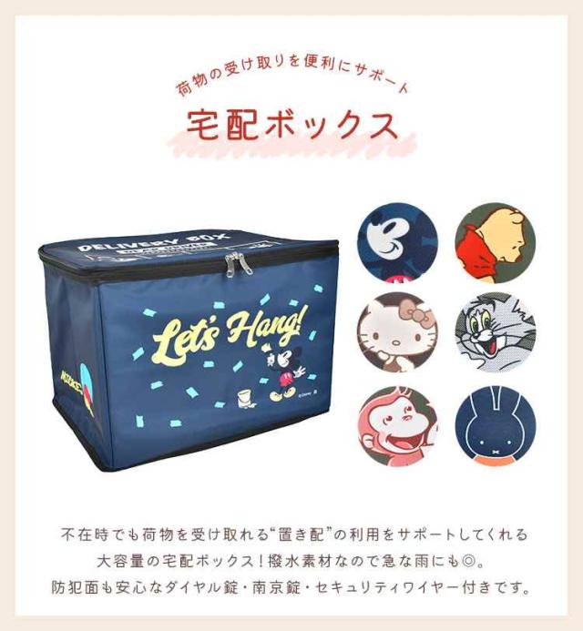 宅配ボックス 置き配ボックス デリバリーボックス 折りたたみ 折り畳み アパート マンション 一戸建て おしゃれ かわいい 鍵付き カギ付き 南京錠 ダイヤル錠 ワイヤー付き 防水 撥水 大容量 ミッキー キティちゃん プーさん トムとジェリー ミッフィー おさるのジョージ