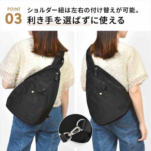 ショルダー紐は左右付け替えOK。利き手を選ばず使えるストレスフリー設計!