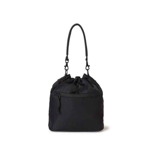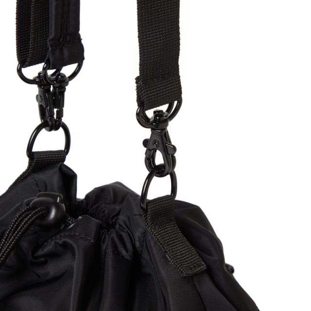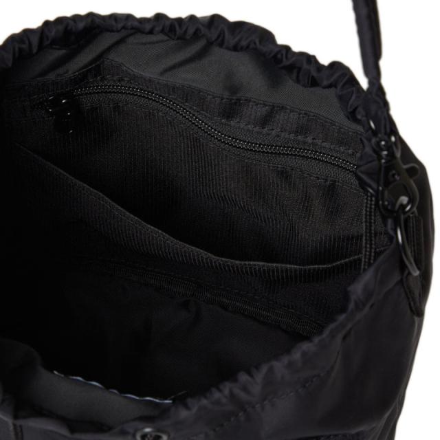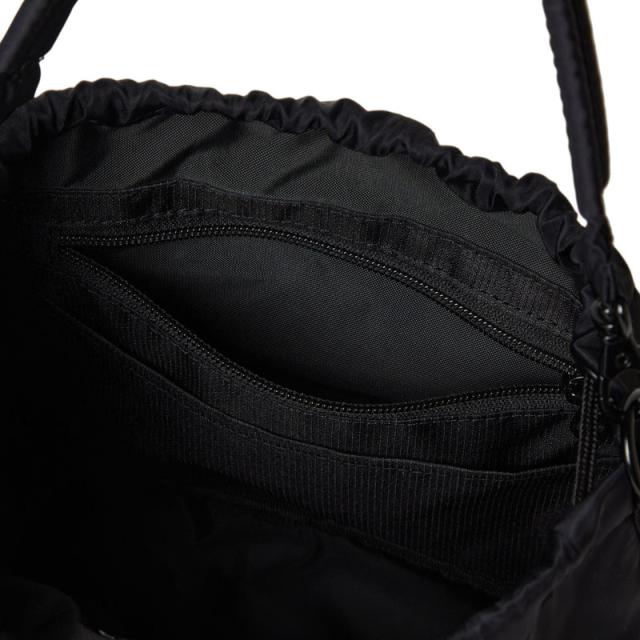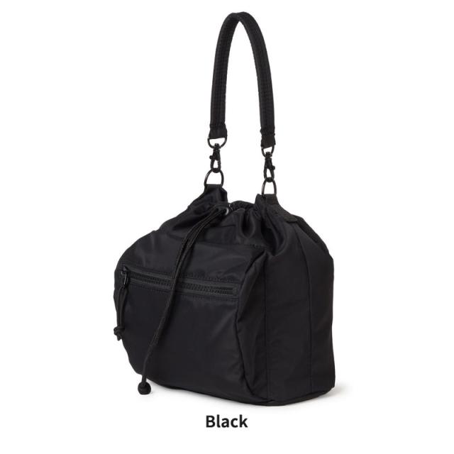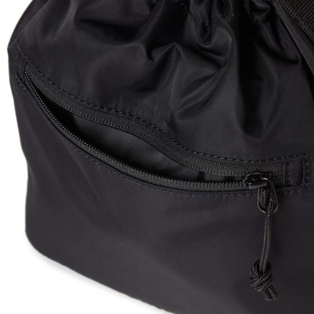 2WAY DRAWSTRING POUCH 3L NYLON TWILL ショルダーバッグとして、ハンドバッグとしてデイリーに使用可能な巾着型の2WAYポーチ。ミニマルなデザインながらも、財布や携帯などの必需品をしっかり収納できるサイズ感。カジュアルコーデの外しとしても使えてデイリーユースにおすすめ。
