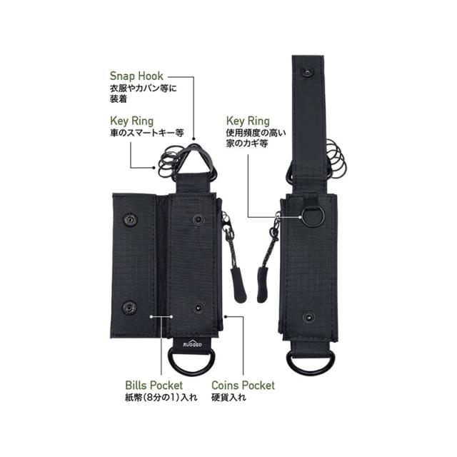 RUGGED マルチキーケースS ブラック マルチキーリング アウトドア系 鍵・小銭・硬貨等も入れられる ヤック PF-431