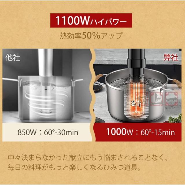 低温調理器 低温 1100W ハイパワー スロークッカー 低温調理器具 防水 軽量 真空調理器 低温調理 24時間 タッチパネル 予約機能温度設定 タイマー 調理家電