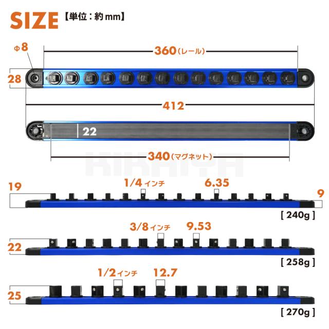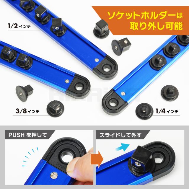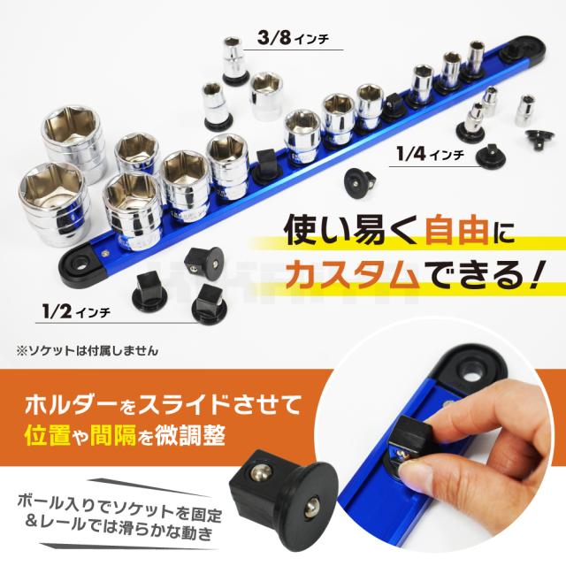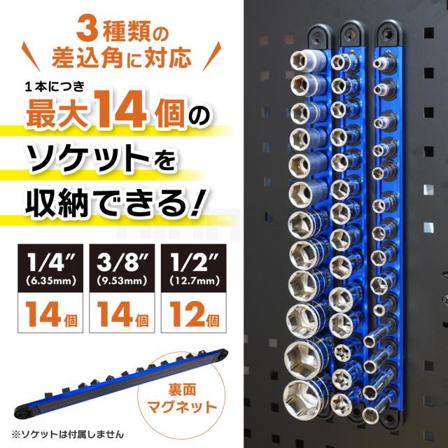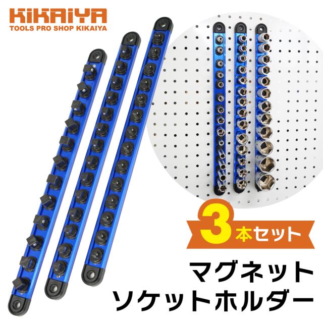 マグネット ソケット ホルダー 3本セット 強力 マグネットソケットホルダー 1/4インチ 3/8インチ 1/2インチ 最大14個 収納 スライド式 工具 整理 KIKAIYA