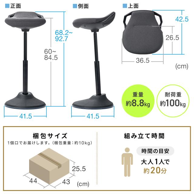 デスクチェア 姿勢矯正 ハイスツール バランスチェア カウンターチェア 腰痛対策 ガス圧昇降 ブラック グレー[150-SNCERG22]