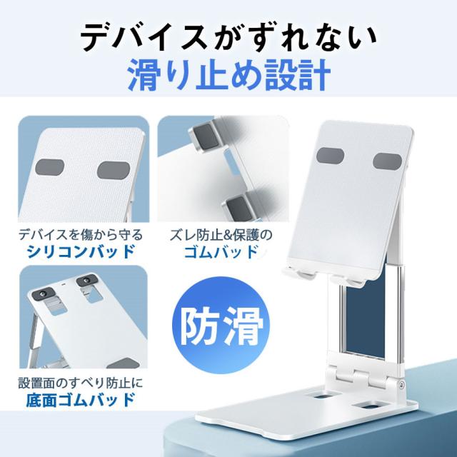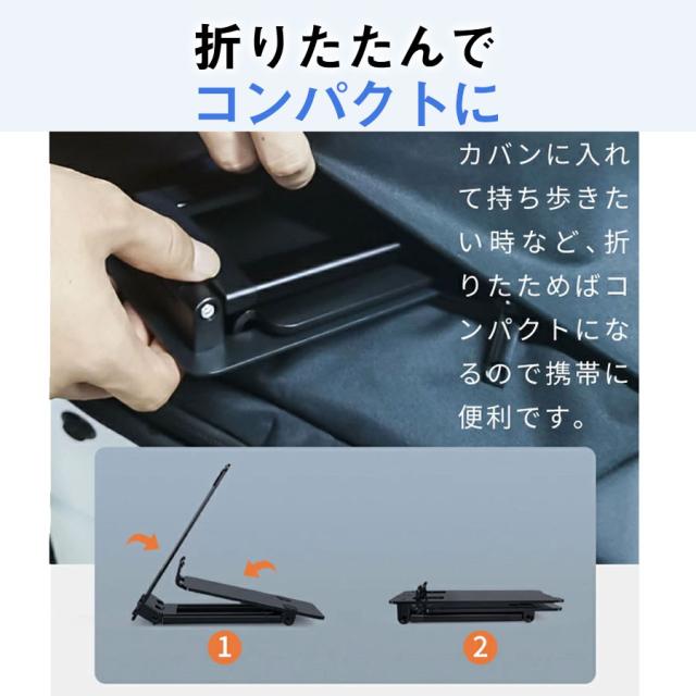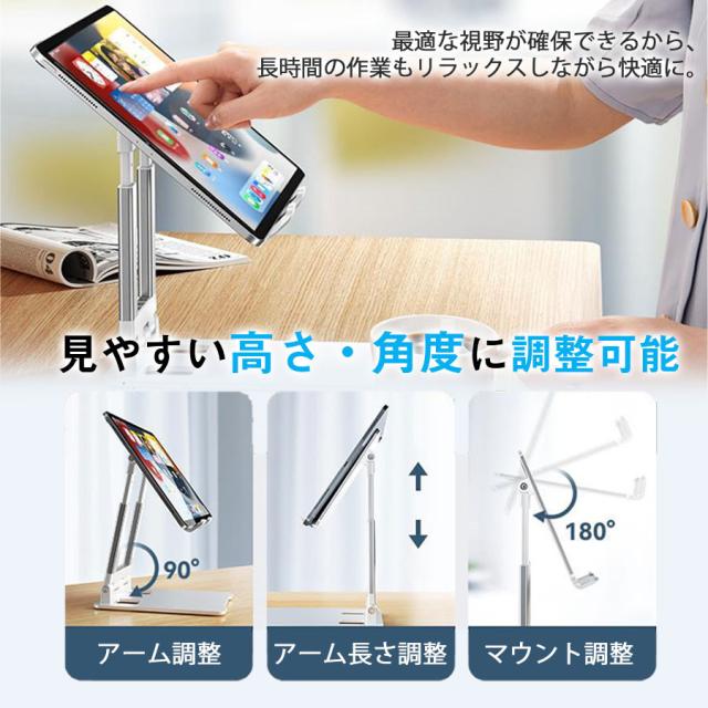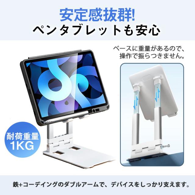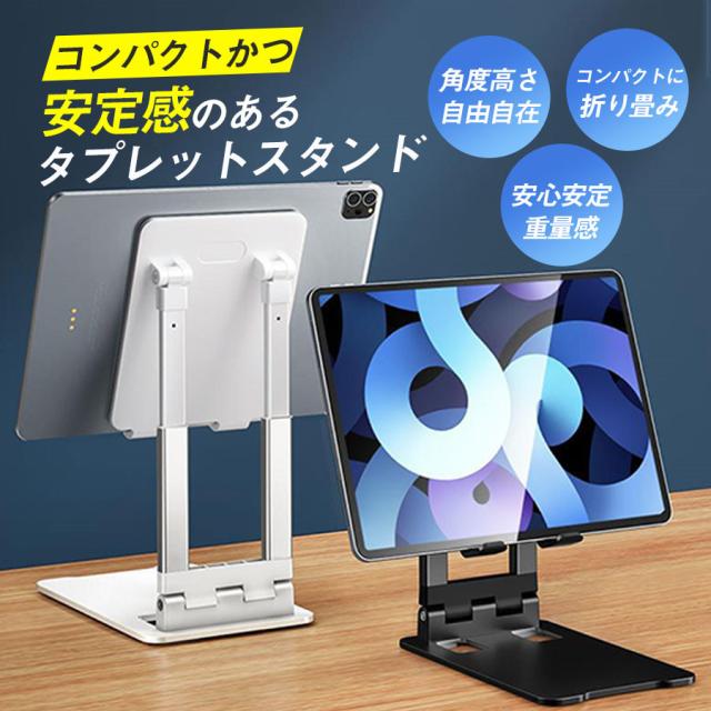 タブレットスタンド iPadスタンド スマホスタンド 角度調整 高さ調整 滑り止め 折りたたみ 縦置き 横置き 持ち運び アルミ