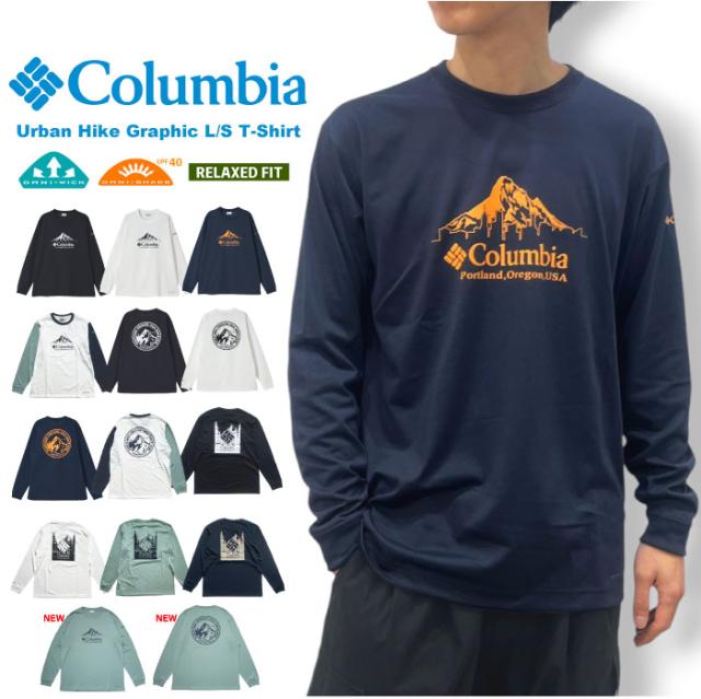 Columbia コロンビア アーバンハイクグラフィックロングスリーブTシャツ 長袖Tシャツ レギュラーフィット ロンT メンズ アウトドア スポーツ 吸湿速乾 UVカット UPF40 日焼け防止 PM0571 メール便可能