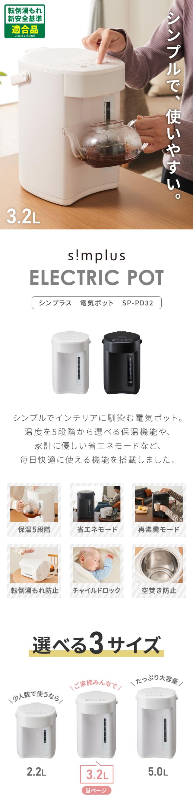 simplus 電気ポット 3.2L 省エネモード 保温 マイコン式 大容量 コンパクト ジャーポット ポット 【メーカー保証1年】