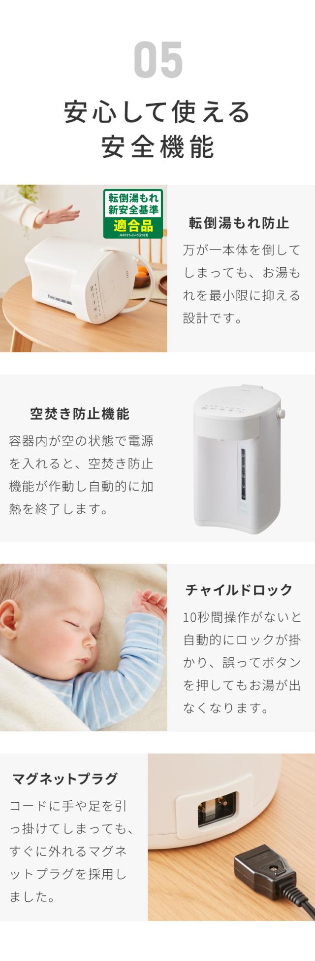 - 孫の誕生に合わせて娘にプレゼント しました。 温度設定も出来るので便利だし 容量も多いのでミルクの量が増えても 心配なしです。 娘からありがとうと喜んで貰えました。 自宅で使用してるのが壊れたらウチも...