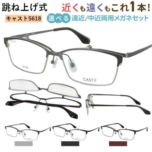 老眼鏡 おしゃれ メンズ 遠近両用 男性 遠近両用メガネ 中近両用 リーディンググラス 跳ね上げ式 サーモントブロー スクエア メタルフレーム CAST 5618 鼻パッド付き 調整可能 シニアグラス 掛け替え不要 遠くも近くも見える 近視 遠視 老眼 乱視