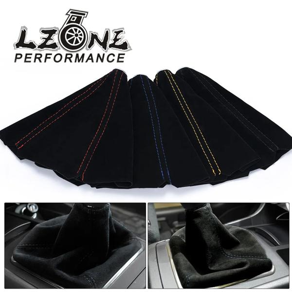 ユニバーサルスエードレザーカーギアシフトカラー,16mm,カーボンファイバー,手動ギアシフトノブ,ブーツカバー,ゲートル