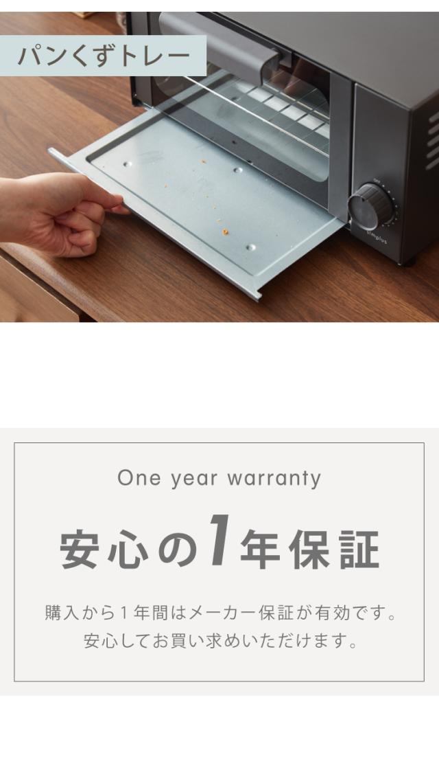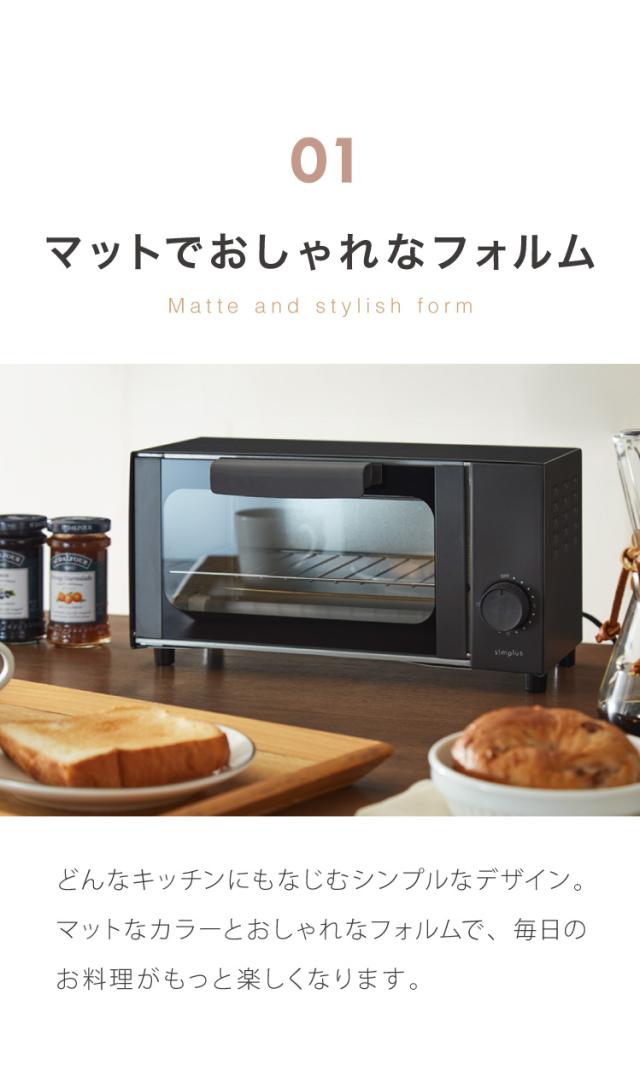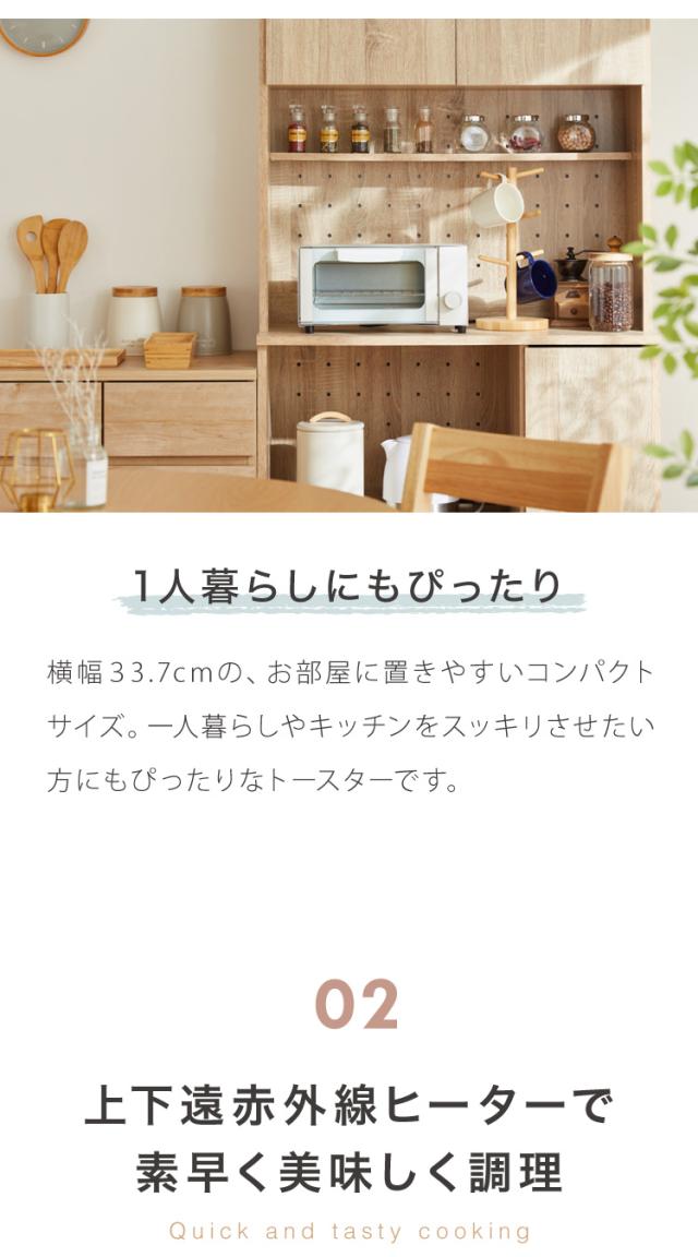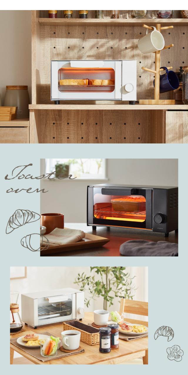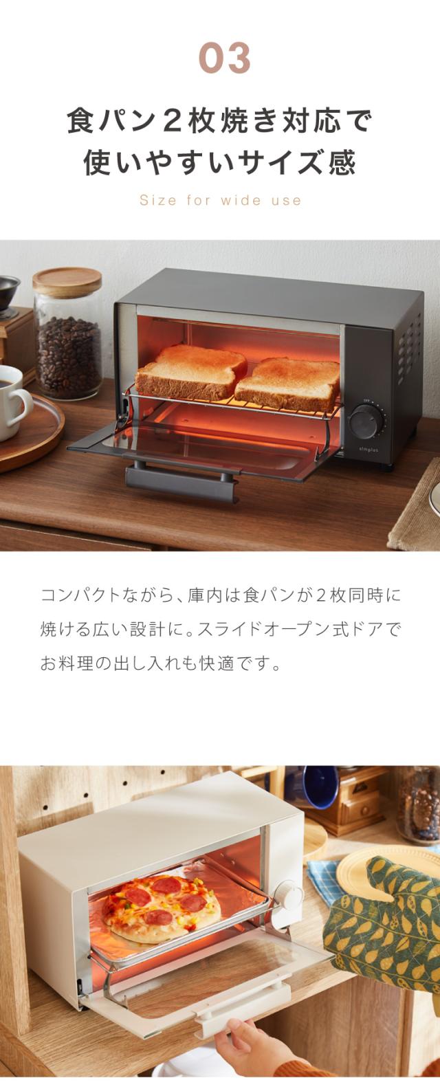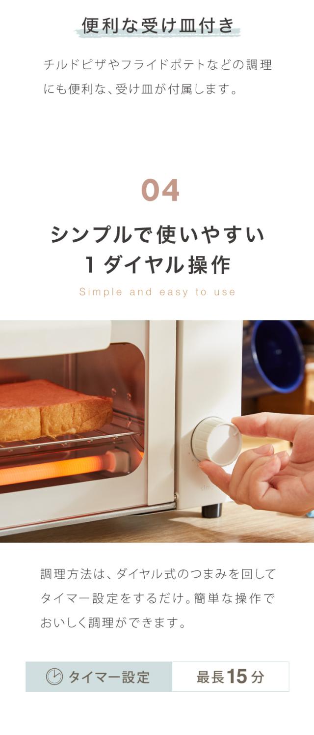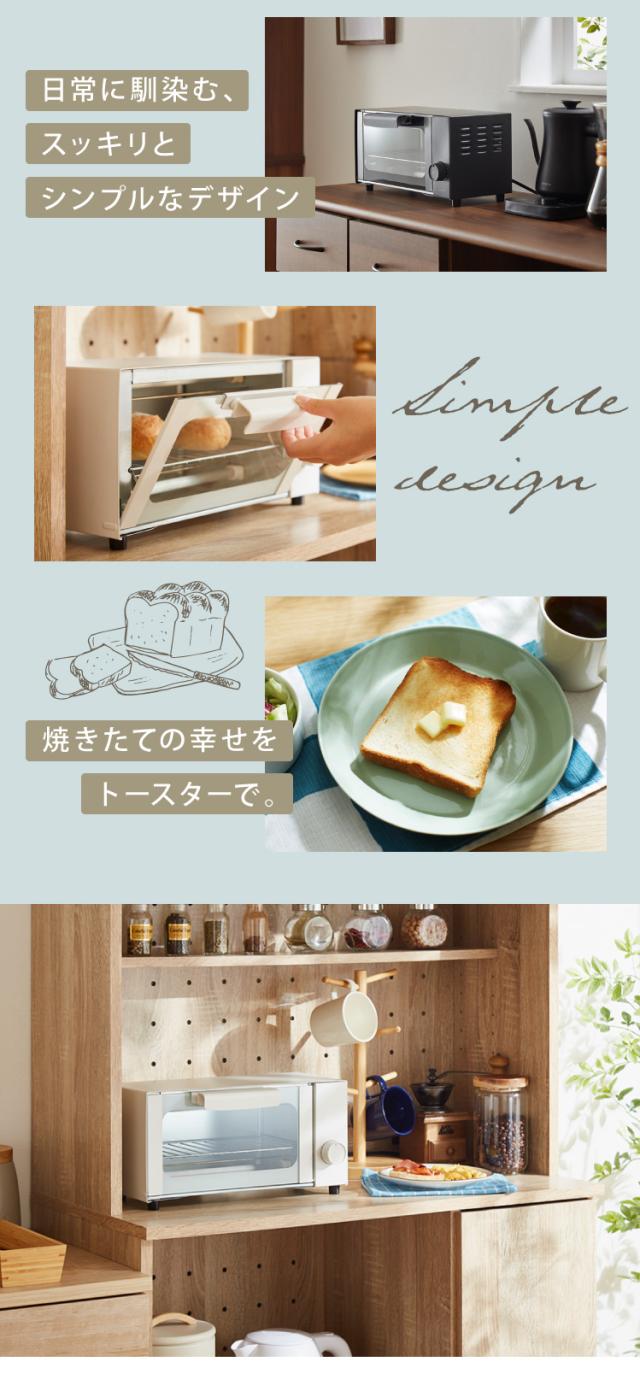 トースター、新生活、一人暮らし、パン、朝食、お手入れ簡単、山型パン、山形パン、餅焼き、バターロール、クロワッサン、クッキー、フライ、ホットドック、切りもち、ポテト、チキンナゲット、ピザ、グラタン、冷凍食品、焼き芋、焼いも、シンプル、コンパクト、高火力