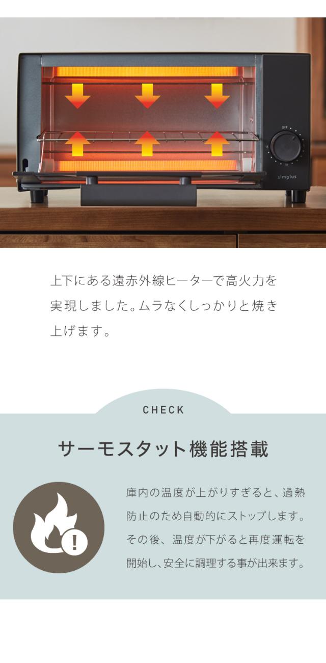 トースター オーブントースター 2枚焼き simplus タイマー付き 一人暮らし SP-TB01 シンプラス 【メーカー保証1年】