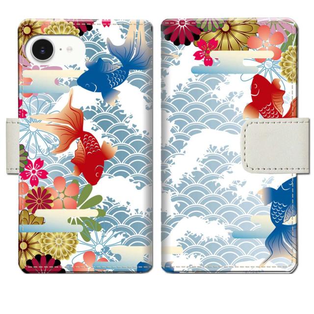 iPhone16e アイフォン16e 手帳型スマホケース 手帳ケース 手帳カバー【金魚ンデザイン】