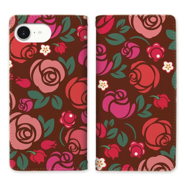 Apple iPhone16e iPhone17e 共通 ベルトなし スタンド機能 -薔薇デザイン - 手帳型 スマホケース 手帳ケース 手帳カバー スマホカバーマグネットでピタッと閉じる スマホケース スタンド スマホカバー 手帳ケース 手帳カバー
