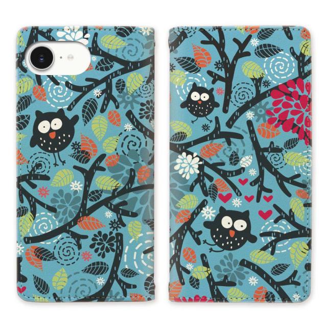 Apple iPhone16e iPhone17e 共通 ベルトなし スタンド機能 -ふくろうデザイン - 手帳型 スマホケース 手帳ケース 手帳カバー スマホカバーマグネットでピタッと閉じる スマホケース スタンド スマホカバー 手帳ケース 手帳カバー