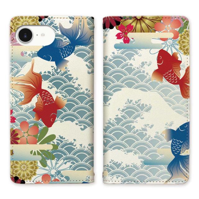 iPhone16e アイフォン16e ベルトなし 手帳型スマホケース 【金魚ンデザイン】マグネットでピタッと閉じる スマホケース スタンド スマホカバー 手帳ケース 手帳カバー