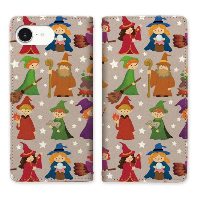 Apple iPhone16e iPhone17e 共通 ベルトなし スタンド機能 -魔法使いデザイン - 手帳型 スマホケース 手帳ケース 手帳カバー スマホカバーマグネットでピタッと閉じる スマホケース スタンド スマホカバー 手帳ケース 手帳カバー