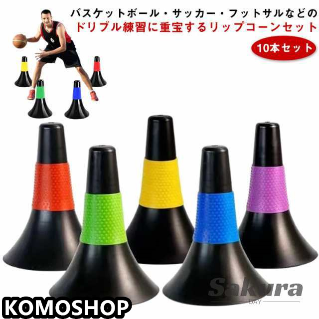倒れにくい リップコーン バスケ 練習 10本セット ドリブル練習 中学生 軽量 練習グッズ バスケットボール サッカー トレーニング 子供 ジュニア 小学生 俊敏性 高校生 瞬発力 安定感 軽い 送料無料