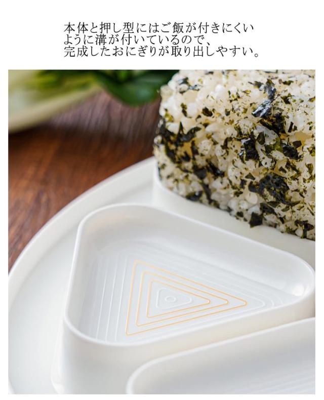 | 本体にご飯を入れてギュッと押すだけで、誰でも簡単にきれいな形のおにぎりが作れる。 最大6個のおにぎりが同時に作れる! 具材を変えて作ると、6種の味を一気に作ることも可能。 本体と押し型にはご飯が付きにくいように溝が付いているので、完成したおにぎりが取り出しやすい。 押すだけなので、炊きたてのご飯でも手が熱くなる心配なし◎ 忙しい朝のお弁当作りや、大人数でのパーティー準備も時短になる便利アイテム♪ | |
