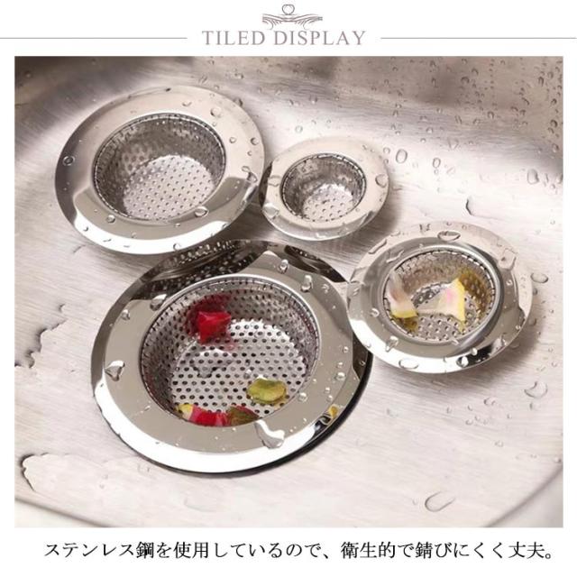 | 排水口にモノを落とすのを防ぎつつ、簡単に掃除できることができます。 ステンレス鋼を使用しているので、衛生的で錆びにくく丈夫。 底の丸い形状とパンチングメタルでゴミが集まる! 髪の毛やゴミが絡まず、するっと取れるのでとっても便利です。 選べる4サイズ展開、ほとんどの流し台メーカーの排水口にぴったり。 台所のシンクだけでなくユニットバスにも使えます。 | |