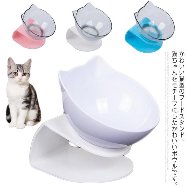 ペットボウル フードボウル 犬 猫 フードスタンド 猫耳デザイン 傾斜のある 調整 食器台 犬猫用 食器 餌台 ペット スタンド ペット用食器 猫が食べやすい 高さと角度に設計 高齢犬 高齢猫 首 腰 関節 おしゃれ いぬ ねこ えさ 皿 小型犬用
