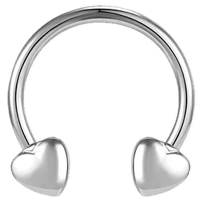 16ゲージのサージカルステンレス316L製のサーキュラーバーベルの両側に可愛いハートをデザインした耳の軟骨や鼻ピアス(セプタム)オススメのボディーピアス。