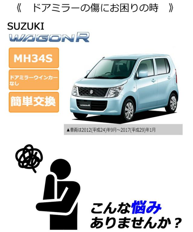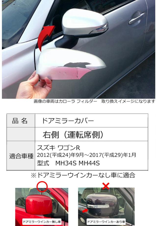 ドアミラーカバー右 スズキ ワゴンR MH34S MH44S ドアミラーウインカー無し車 右側(運転席側)傷・割れ・はげた時にDIYで交換にチャレンジ SWR000