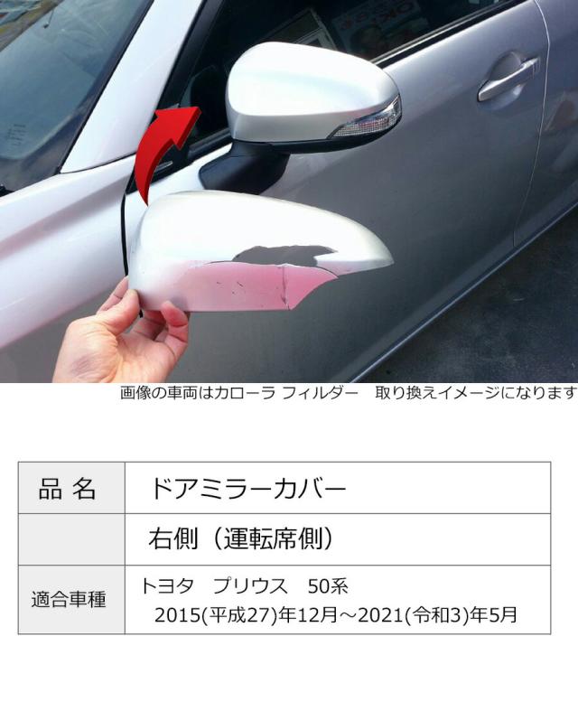 ドアミラーカバー右 トヨタ プリウス 50前期/後期(一部) 右側(運転席側)カラーをお選びください 傷・割れ・はげた時にDIYで交換にチャレンジ TPR000