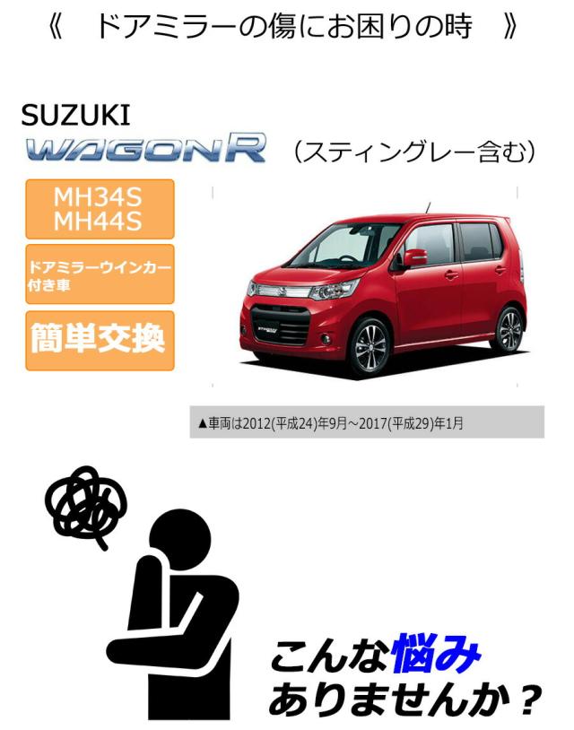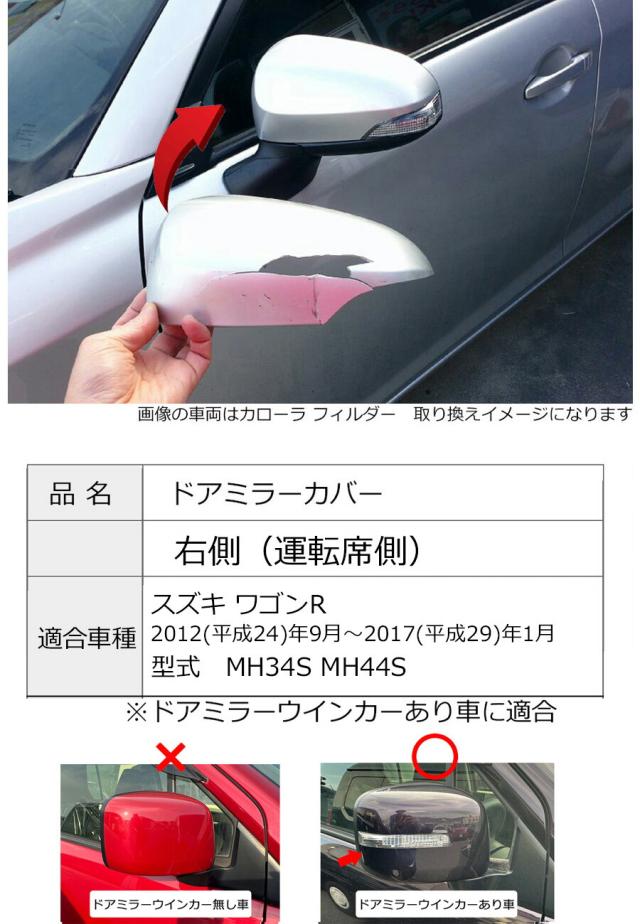 ドアミラーカバー右 スズキ ワゴンR MH34S MH44S ドアミラーウインカー付き車 右側(運転席側)傷・割れ・はげた時にDIYで交換にチャレンジ SWR0