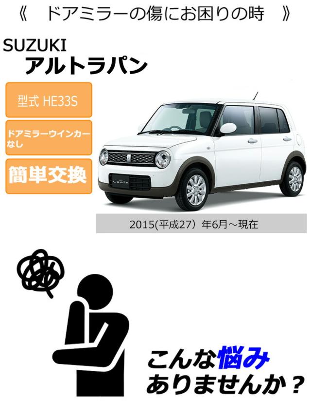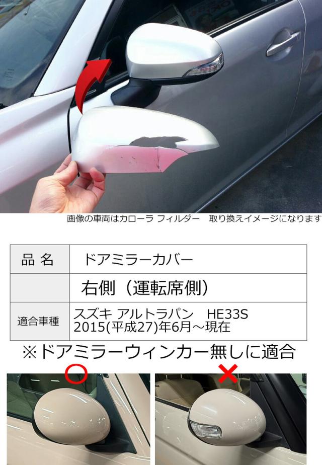 ドアミラーカバー右 スズキ アルトラパン HE33S ドアミラーウインカー無し車 右側(運転席側) 傷・割れ・はげた時にDIYで交換にチャレンジ SRR00